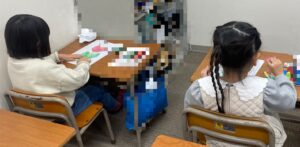 年長クラスは2時間の授業になり、その中で集中力を保ち、問題に取り組む練習をしていきます。